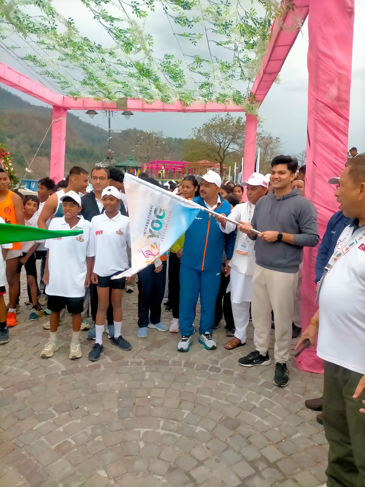 ऋषिकेश (आशीष कुकरेती) 20 मार्च मुनि की रेती, अंतराष्ट्रीय योग महोत्सव के पांचवे दिन योगा साधकों को योग प्राणायाम सेशन के साथ आज रन फार योगा, घर घर योगा, स्वस्थ्य मन काया ओर विश्व शान्ति के लिए मैराथन दौड़ का शुभारम्भ निगम के प्रबन्ध निदेशक प्रतीक जैन ने योग फ्लैग के साथ ग्रीन फ्लैग ऑफ कर विभिन्न विद्यालयों के छात्रों ने प्रतिभाग किया।इस अवसर पर निगम के महाप्रबंधक प्रशासन लक्ष्मी राज चौहान, डी. एस ओ टिहरी ने छात्रों का उत्साह वर्धन किया।